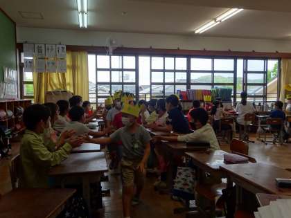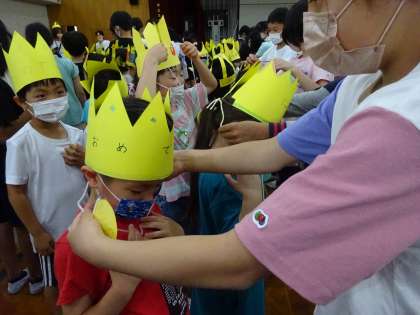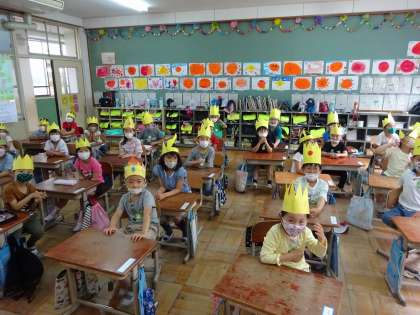 27日に開いていただいた1年生をむかえる会では,王冠をいただき,学校中のみんなにお祝いされてパレードをすることができました。「6年生は優しかったよ!」「5年生のクラスにはくす玉があった!」と歓迎されていることを体感できる時間となったようです。