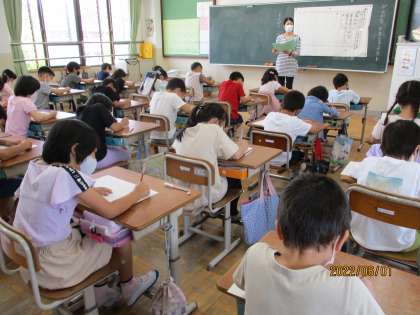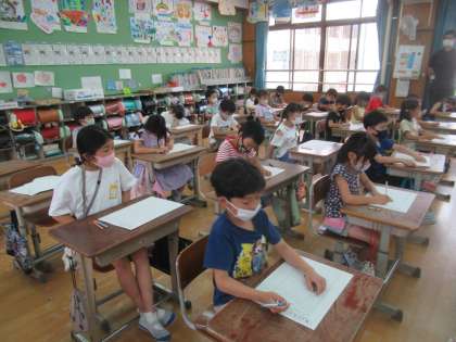 6月1日(水)の国語科の授業では,1組,3組,4組でひらがな聞き取りテストを実施しました。1年生の時にひらがなを学習したばかりですが,ひらがなの読み書きは,子ども達に必要とされる大切な能力の一つです。拗音(「ゃ」「ゅ」「ょ」)や,促音(「っ」),長音(おと「う」さん)などが組み合わさった言葉を一生懸命聞きとり,テストに書いていました。