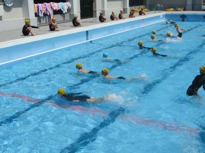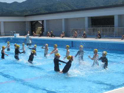 水のかけあいをしたり,ワニさんやかにさんになっての移動を楽しみました。