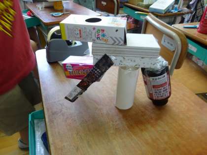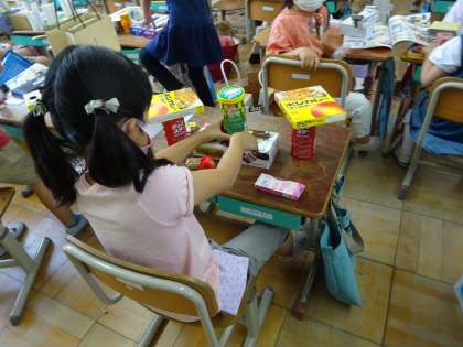図工で,箱の形や色からいろいろなものに見立てて組み立てる「はこでつくったよ」の学習をしました。教科書を見ながらまねして作ってみたり,想像して作ってみたり,たくさんの素敵な作品ができました。ご家庭でたくさんの材料を準備してくださり,ありがとうございました。