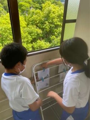 ぞうきんもぴしっとそろえて片付けます。ぞうきんの端と端がそろっていると見ていて気持ちいいですね。