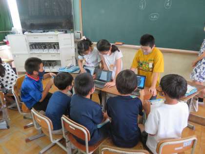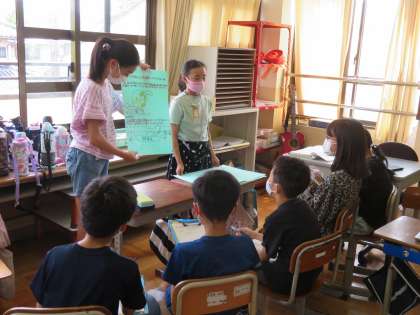 総合の学習で,日本で起こる災害について調べました。今日の学習では,調べたことを交流するためにブースに分かれて,発表しました。