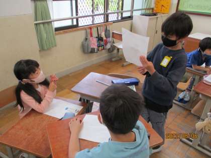 6月6日(月)の国語科の授業では,観察カードの交流をしました。観察メモをもとに作った観察カードを見せ合いながら丁寧に交流しました。活動の最後には,班の中で一番のかんさつ名人を決めて,クラスの前で発表しました。