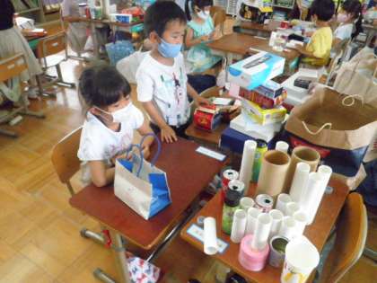 算数科の「いろいろなかたち」の学習で,似ている形を仲間分けしました。「これは,ころがるよ!」「このかたちはつめるね!」と考えながら分けていました。