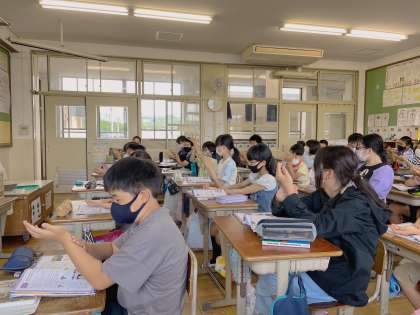 「自分の脈拍は,1分間に何回かな?」手首に手を当てながら調べていました。