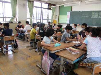 7日(火)の2時間目にたてわり活動を行いました。4年生との初めての顔合わせで楽しみな気持ちと不安な気持ちがあった中でも,4年生が楽しめるようにゲームなどを交えながら進めてくれました。今日は自己紹介と次からの遊び決めをしましたが,2年生もしっかりと自己紹介をしていて,班の人達ととても楽しそうに過ごしていました。たてわり活動が終わった後でも「楽しかった」「次が楽しみ」と言っていて,朝の不安な気持ちはどこへいったのか,とても楽しかった様子で良かったです。