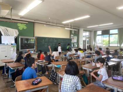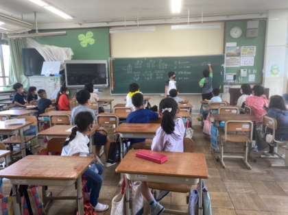 運動場で遊ぶ日はたてわり教室のメンバーで遊びます。4年生が全体の意見をまとめていました。