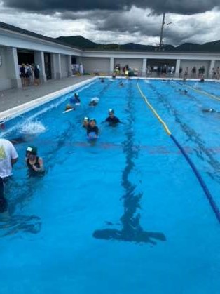 体育科「水泳学習」が始まりました。今日は少し肌寒く,水に入ると冷たさを感じましたが,子どもたちは自分の目標に向かって,懸命に泳いでいました。