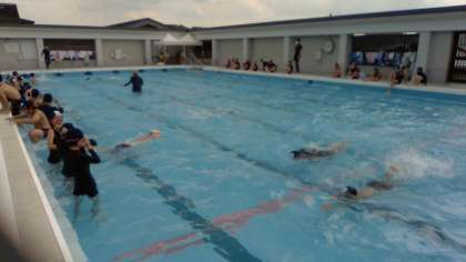 2組と4組は6年生になって初めての水泳学習でした。1年ぶりの水泳学習,みんな一生懸命泳ぎました。