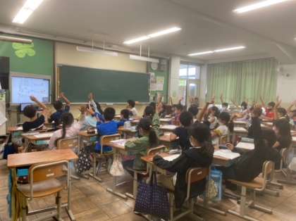 質問コーナーでは「燃やした後の灰は,再利用できませんか。」「埋立地が1つだけなのは,どうしてですか。」「分別せずにごみを出したらどうなりますか。」など,学習したことをもとに,質問していました。