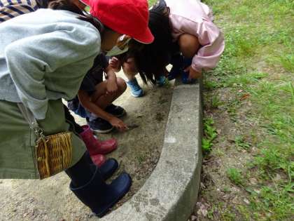 雨上がりの公園でしたが,次々に生き物を見つけ出す子どもたち。