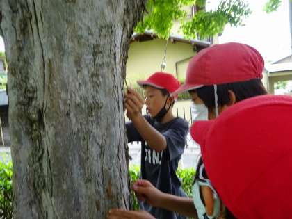 総合の学習で,学校からすぐ近くの四の坪公園に行き,生き物探しをしました。