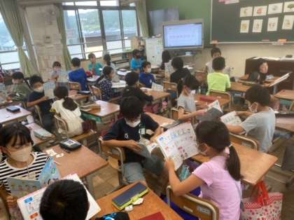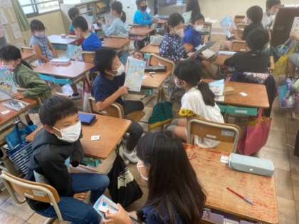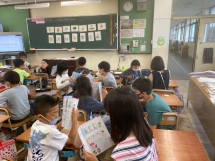 外国語活動「I like Mondays.」の学習では,自分の曜日ごとの予定から「What day is it?」クイズを出し合いました。「It's Monday!」と友達の出したクイズに楽しみながら答えていました。