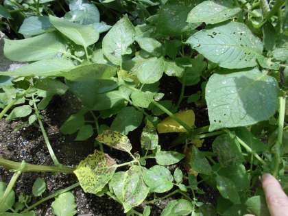 最近,葉がかじられて穴が開いてきました。根に近い部分から葉が黄色くなってきました。収穫までもう少しです。