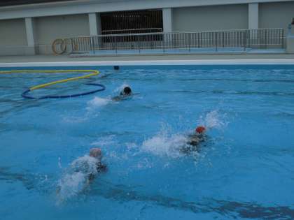 みんなで泳いだことを日記に書きました。水がキラキラきれいなこと,みんなで宝物探しをしたこと,楽しかったことを絵や文で書きました。日記は教室に掲示しています。