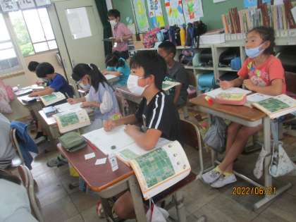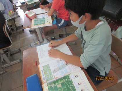 算数科の学習では,直線の交わり方を調べました。2本の直線が交わってできる角が直角の時に,この2本の直線は垂直であることを学びました。