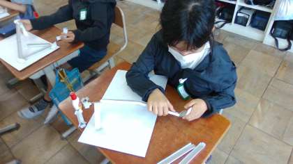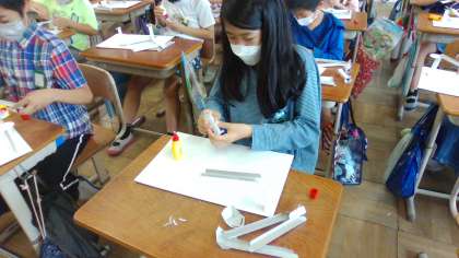 図画工作科でビー玉を転がすコース「コロコロガーレ」に取り組んでいます。どんなコースを作ろうかと,子どもたちは楽しみながら取り組んでいます。