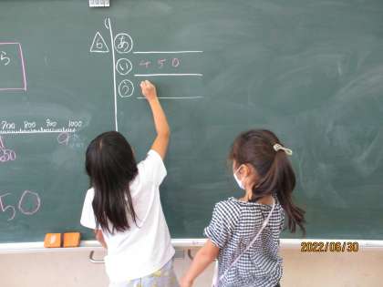 30日(木)の算数科の授業では「100をこえる数」で数直線を学習しました。数直線を見て気づいたことでは,右にいくほど数が大きくなっていることや,目盛りの大きさに着目することができていました。数直線は,目盛りの大きさを判断しなければいけませんが,数のつながりや順序をとらえるのに数直線はとても分かりやすい方法なのでマスターしてほしいなと思います。