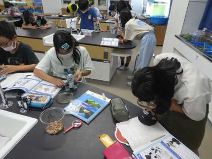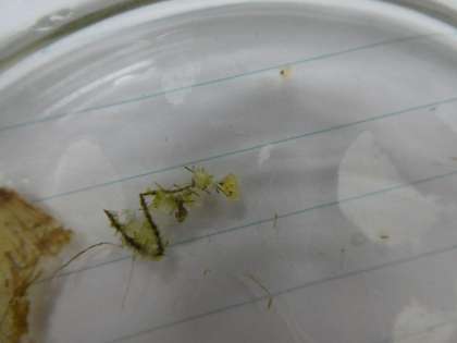 ホテイアオイの根に産み付けられた卵をシャーレにとって,