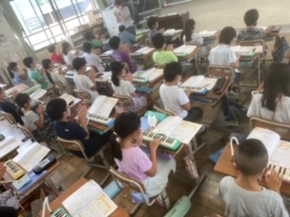 音楽科では,鍵盤ハーモニカと手拍子を重ねて演奏をしました。「だんだんテンポが速くなってしまう!」「重なりがずれてしまった。」と1度目の演奏では言っていましたが,徐々に演奏が合わさると「きれいな音色で演奏できた!」と嬉しそうでした。