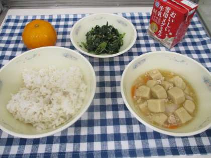 今日の給食クイズは,カルシウム比べ(高野どうふ vs 牛肉)でしたね。高野どうふにはカルシウムがたくさんふくまれます。