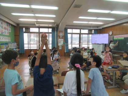 グループに分かれて野菜クイズを考えたり、答えたりしました。