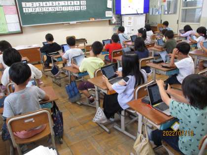 12日(火)の外国語活動では、実際に「いくつかなクイズ」を作りました。GIGA端末を使って果物や犬、猫の数を増やしたり、移動させたり、大きさを変えたりと自分なりの「いくつかなクイズ」を作りました。次の学習では、クラスみんなが作った「いくつかなクイズ」を使いながら、英語でクイズ大会をしようと思います。