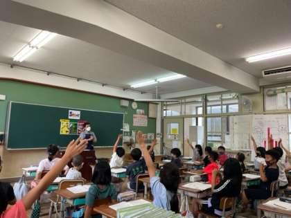 ライフさんの出前授業がありました。最初は質問タイムです。スーパーの工夫についてたくさん教えていただきました。中でも食品ロスについてのお話に興味を持った子どもたち。「冷蔵庫の中を見てから買いものに行くよう、家に帰ってから伝えよう!」「食べ放題は、とりすぎずに、食べきれる量を考えたい」など、自分にできることを考えました。
