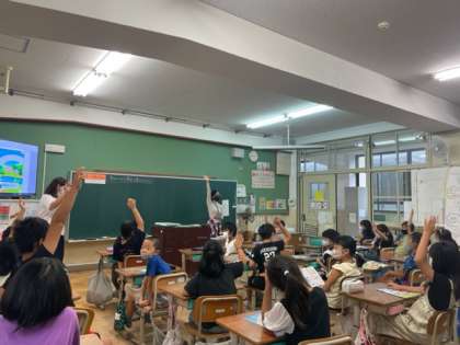 外国語活動では、「Do you like〜」を使って、好きなものを尋ねたり、それに答えたりする学習をしています。今日はALTのガリーバ先生に教えていただく最後の授業でした。今までの感謝の気持ちを込めて、メッセージカードをプレゼント。ガリーバ先生の笑顔を忘れず、これからも楽しく外国語を学んでほしいと思います。