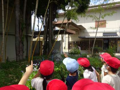 生活科の「夏の楽しみ」の学習で、学校の畑に夏を探しに行きました。「蝉の声はするのに木にいないね。」「こっそり近づかないとね。」「あそこにいた!」と観察することが出来ていました。他にも、上級生の育てている畑の野菜も観察しました。