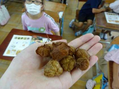 生活科でずっと育てているフウセンカズラに種ができました。「振ってみるとシャカシャカなるね。」「1粒の種から育てたのに、たくさん種ができるなんて不思議だね。」フウセンカズラを育てることでたくさんのことを学べたようです。