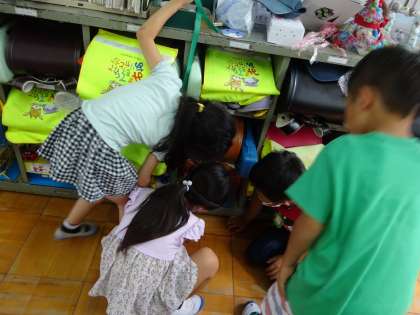 算数科の「おおきさくらべ」の学習では、紙テープを使って机やロッカーの高さを比べました。紙テープを使うと、実際に重くて運べないものでも、比べられることが分かりました。