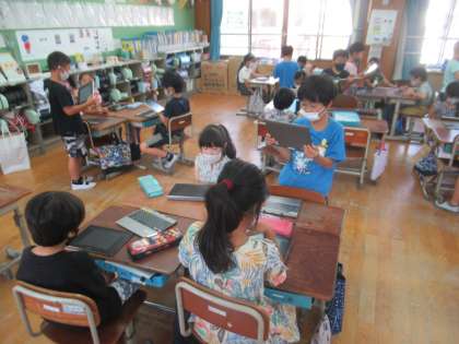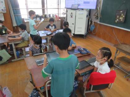 タブレットを使って、地域の公園までの行き方の説明をしました。校区にある3つの公園から1つの公園を選び、その公園までの道案内をしました。