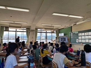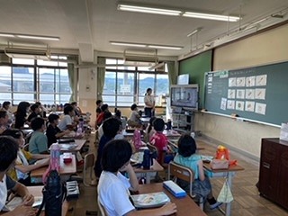 外国語の学習では、身の回りの文房具の言い方に慣れ親しみました。ALTのルイス先生と一緒に単語を言ったり、ビンゴゲームをしたりしながら楽しんで学習しました。