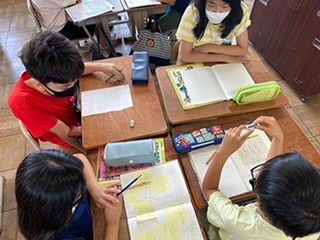 社会科「自然災害からくらしを守る」の学習では、京都市に台風が来た時に、だれがどのように対応したのかを調べました。付箋を使って整理したり、付箋を線でつないだりしながら調べて分かったことをまとめました。