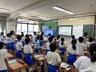 音楽科の授業では、「チャレンジ」を歌いました。リズムに乗りながら、互いの歌声を合わせました。また、リコーダーでも、互いの音色を合わせて演奏しました。