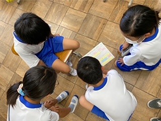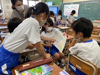 音楽科「いろいろなリズムを感じ取ろう」の学習で、「いわくら」の言葉を使ってくり返しの仕組みを使ったり,違うリズムを重ねたりして、グループごとに音楽づくりをしました。つくった音楽はグループごとに練習をし、発表しました。「リズムを重ねることが楽しかった。」「いろいろな音楽があって面白かった。」と互いの音楽を聴いて感想を話していました。