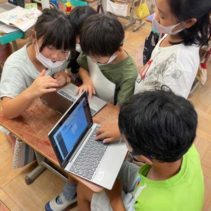 最近はタブレット操作にも慣れてきた様子の子どもたち。お誕生日係さんが、ロイロノートでお誕生日カードを作成中。中身を覗いてみると「お誕生日おめでとう!これからもがんばってね! おまけ問題 37÷5は?」の文字が…。最近学習した、あまりのあるわり算のプレゼントだそうです。