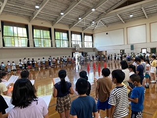 来週の宿泊学習へ向けてキャンプファイヤーの練習をしました。入退場の練習をしたり、進行の確認をしたりしました。初めてのキャンプファイヤーを子どもたちはとても楽しみにしています。