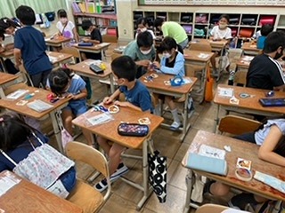 今週、モノづくりの殿堂・工房学習を行いました。伝統産業で有名な京都ですが、最新技術でものづくりをしている会社も多くあります。今回は京セラの圧電素子という圧力を加えると電気をつくる技術を使って、お腹を叩くと目のLDEライトが光るたぬきを作りました。「得意なことや楽しいことを大切に、人の役に立つものを作りたい」という、ものづくりをしている人々の話を聞いて「ものづくりって楽しんだな。」「特異なことや好きなことを生かしていきたいな。」と子どもたちは感想を話していました。