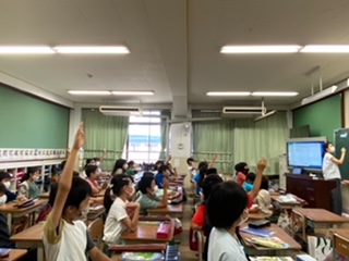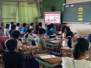 音楽科では、民謡「こきりこ」について学習してきました。聴こえてきた演奏から「呪文のような言葉が聴こえた。」「太鼓の音が聴こえました。」と気付いたことや感じたことを話し合いました。その後映像で楽器の名前や音色を確かめながら、民謡の特徴について学習しました。