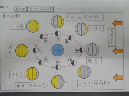 理科だより6年「月の形と太陽との位置関係」