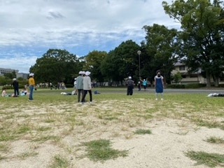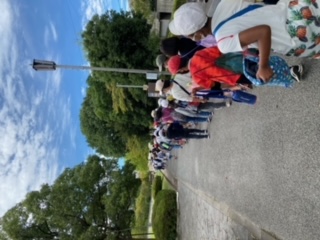 お弁当を食べた後は、北園での昼休み。たるまさんが転んだをしたり、追いかけっこをしたりと楽しみました。「捕まえた!」とバッタを見せてくれた子もいました。秋晴れの中、楽しい時間となりました。
