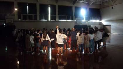 キャンプファイヤーで行った「クワガタ音頭」の様子です。とびっきりの笑顔で楽しそうに参加する子どもたちの姿が微笑ましかったです。
