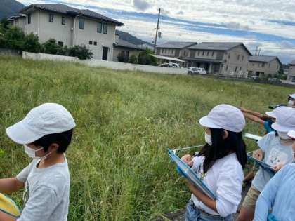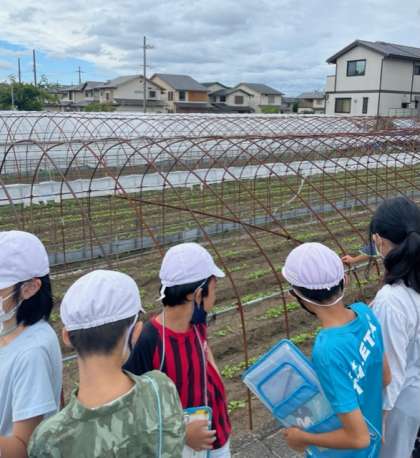 朝晩すっかり涼しくなり、秋を感じる今日この頃。社会科では地域の京野菜「すぐき菜」について学習を進めています。調べ学習で、夏の終わりに種まきをすることを知った子どもたち。今日は学校の周りを散歩しながら、畑を見てまわりました。「あれは間引きの中でも、つまみの時期かな」「お米もたくさんできてる!」「ナスも育ってるね」たくさんの野菜を見つけたようです。