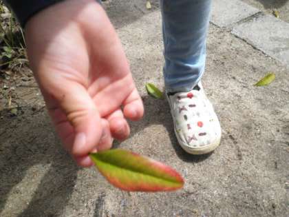 生活科の時間に学校で、生き物探しをしました。バッタやカエルを見つけては嬉しそうに報告してくれる子どもたち。きれいな葉や花を見つけて教えてくれた人もいました。次は四ノ坪公園で探します。