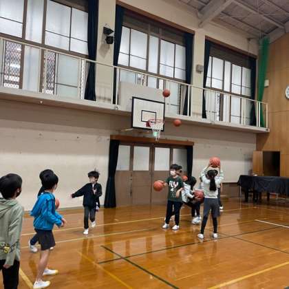 今日は久しぶりに中間休みに体育館で遊びました。バスケットボールをしたり、フラフープを三つまわしたり、なわとびに挑戦する子もいたりと盛り上がっていました。
