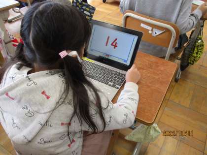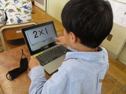 九九カードやGIGA端末のフラッシュカードを使って九九を頑張って覚えています。フラッシュカードでは逆順で練習したり、ランダムに出てくる問題に答えたりしています。「もう覚えたで」「次早くやりたい」ととても意欲的にやっているのでこの調子で頑張ってくれたらいいなと思います。
