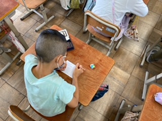 たてわり活動を一緒にしている2年生のリハーサルを見た感想を手紙に書きました。「メラメラダンスがかわいかったよ。」「明日の本番もがんばってね!」「おうえんしているよ。」と、2年生への応援の気持ちを届けました。