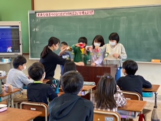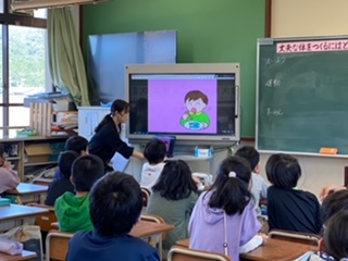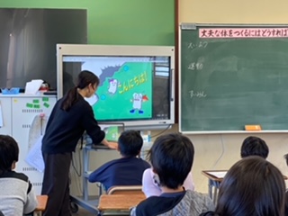栄養教諭の樋口先生に来ていただき、体の成長にかかせないカルシウムについて学習しました。カルシウムは体を作る大切なはたらきをしていること、いろいろな食材に含まれていることを知りました。「子どもたちは、すききらいせず、カルシウムがふくまれているものも食べたい。」と考えていました。